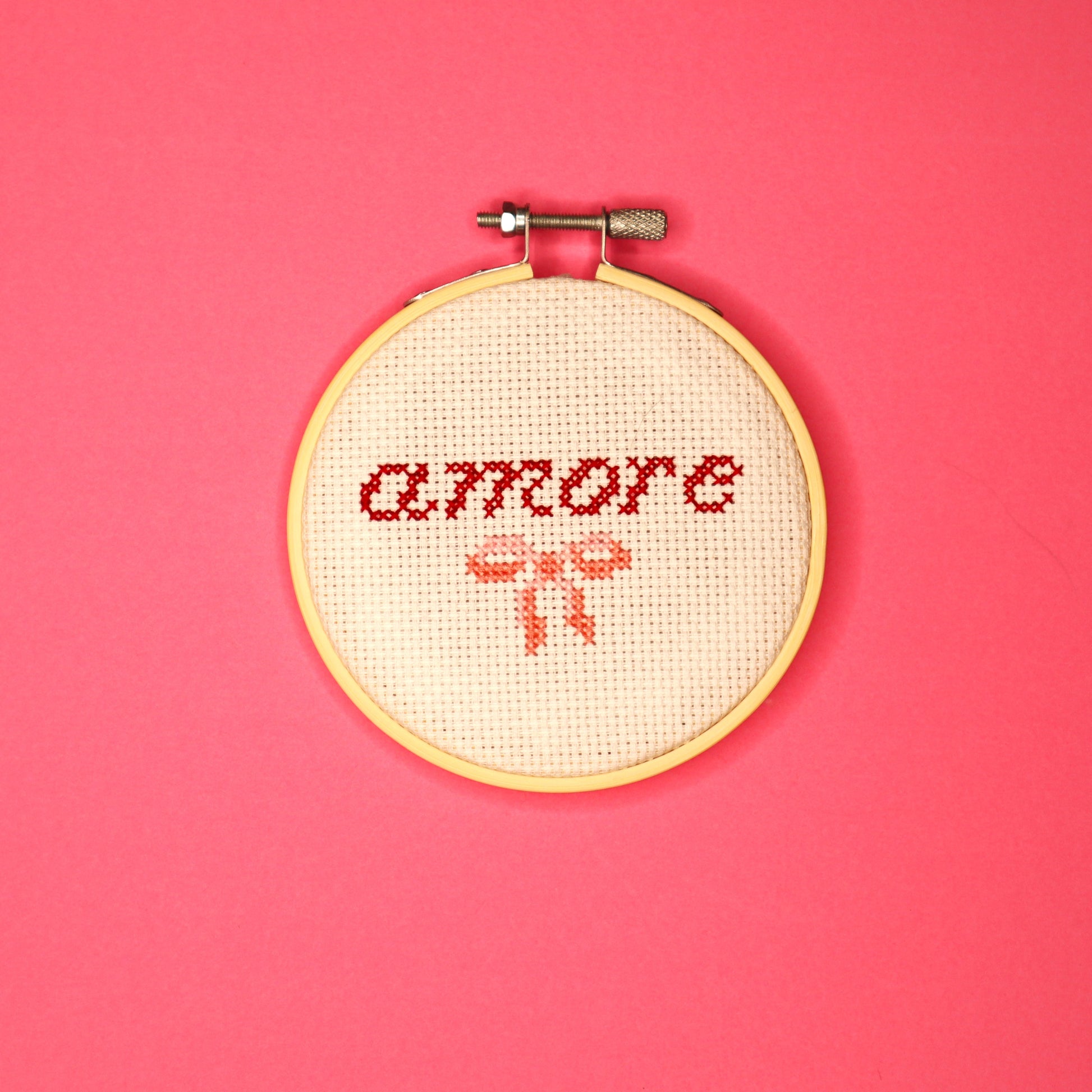 This pattern is designed to fit a 4” hoop when using 14 count aida.