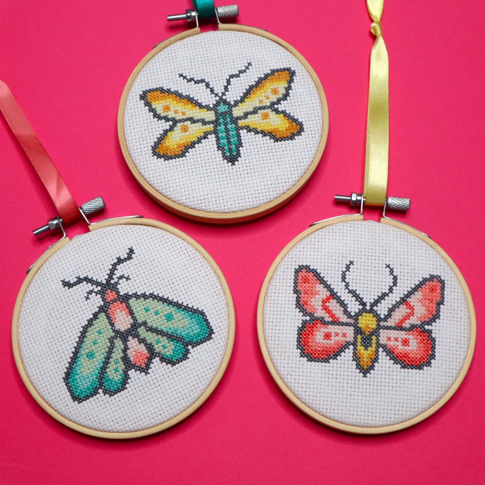 This pattern is designed to fit a 4” hoop when using 14 count aida.